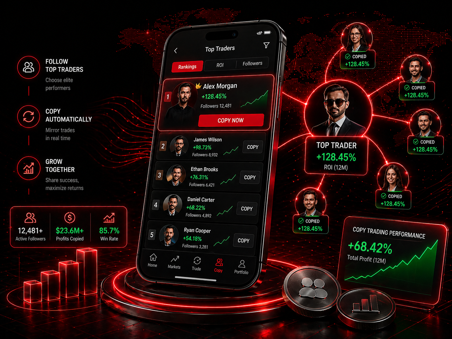 Automatically replicate trades from experienced traders.