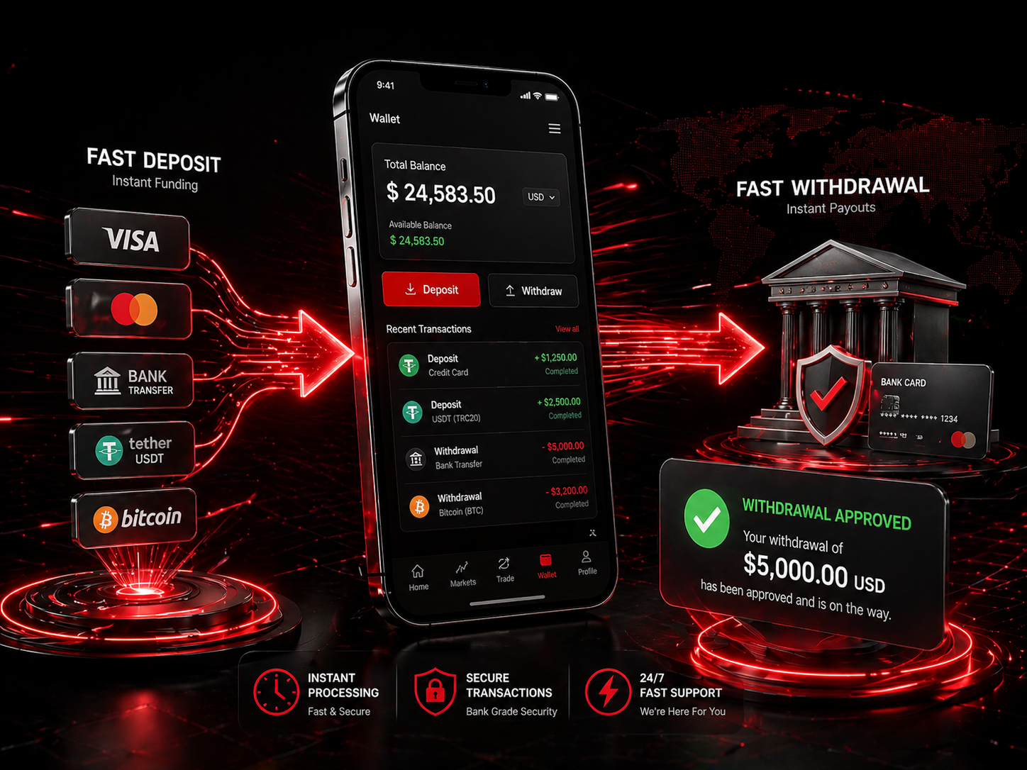 Fund your account securely using trusted global payment solutions with smooth deposits and withdrawals.